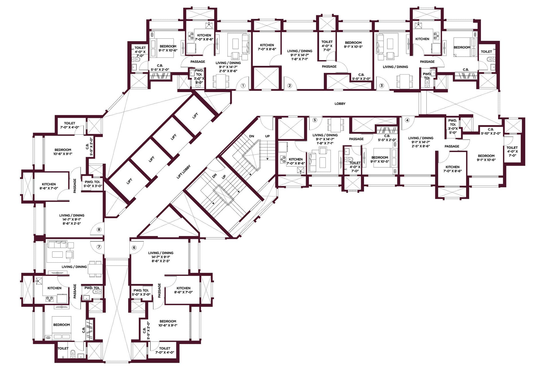 - Carpet area is subject to a variation cap up to (+/-) 3% on account of site conditions / columns / finishes