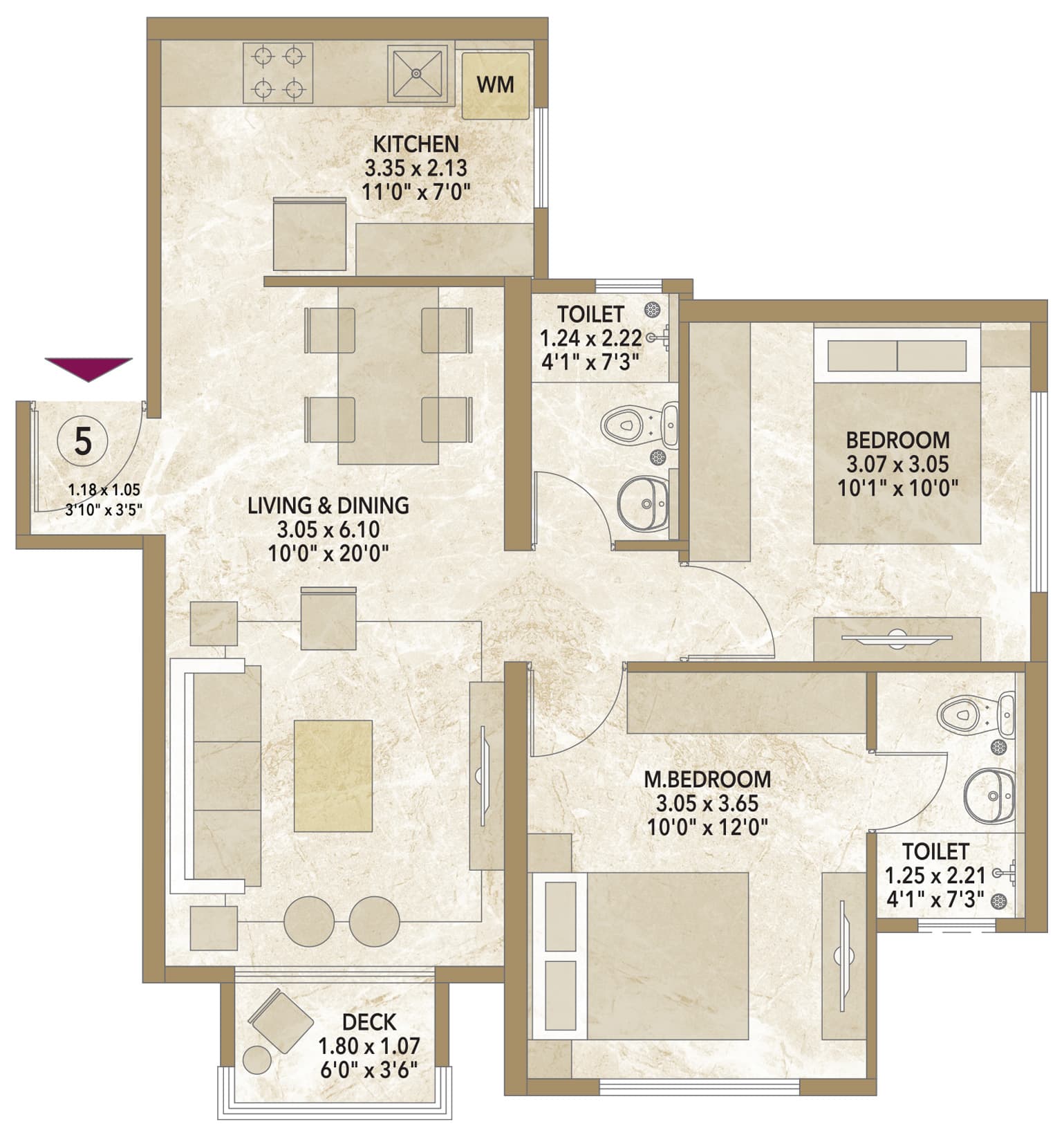 - Carpet area is subject to a variation cap up to (+/-) 3% on account of site conditions / columns / finishes