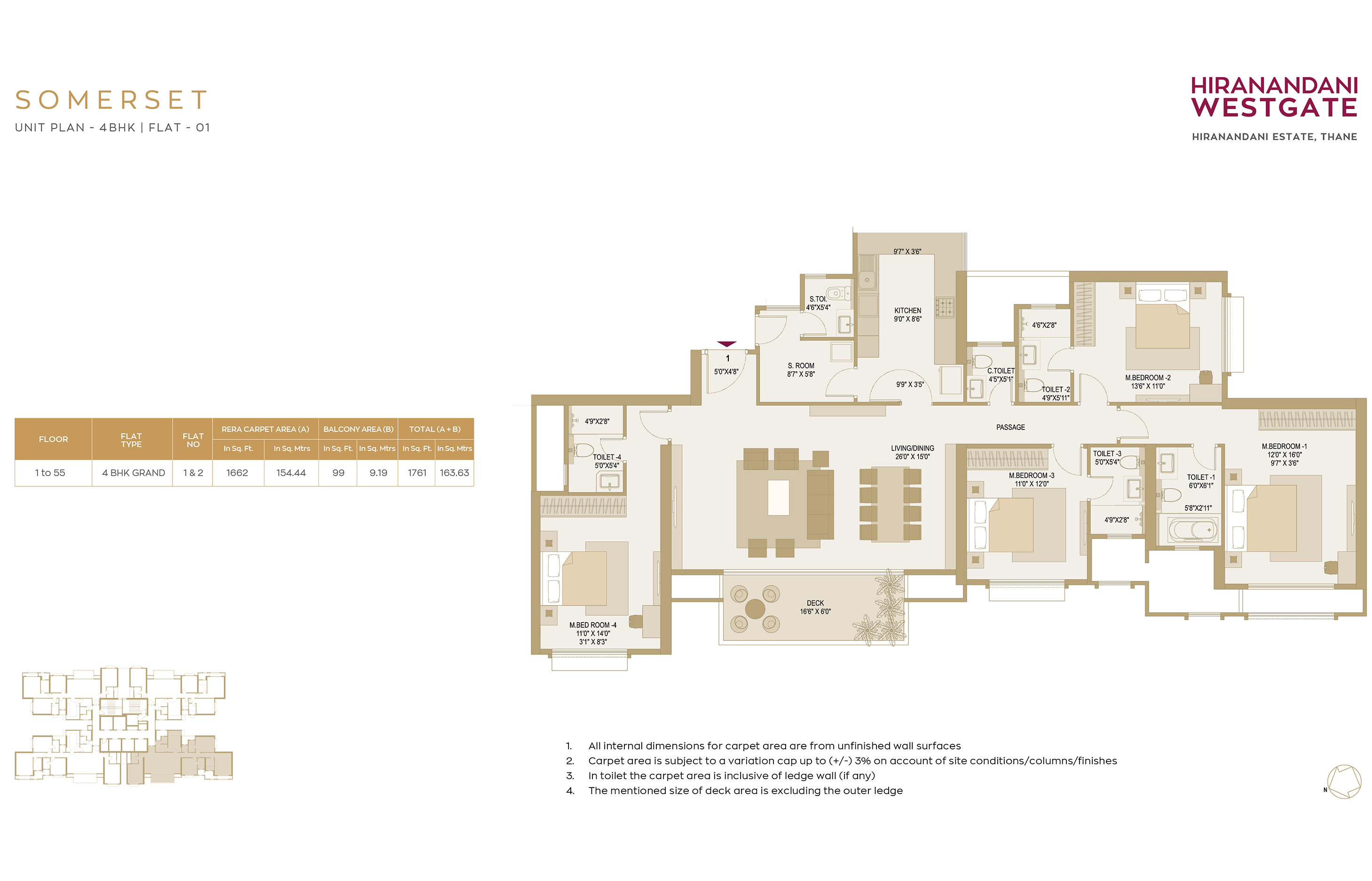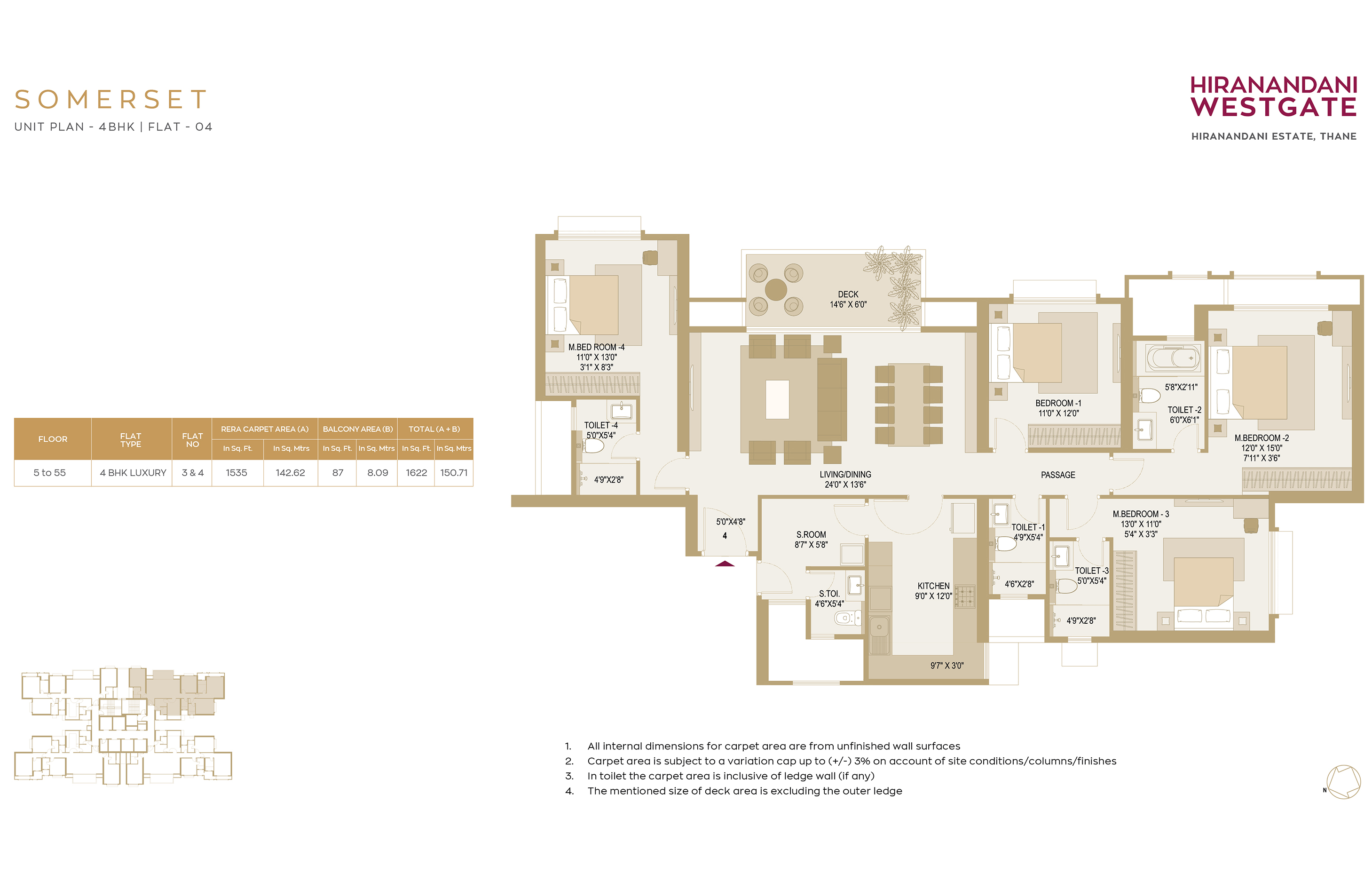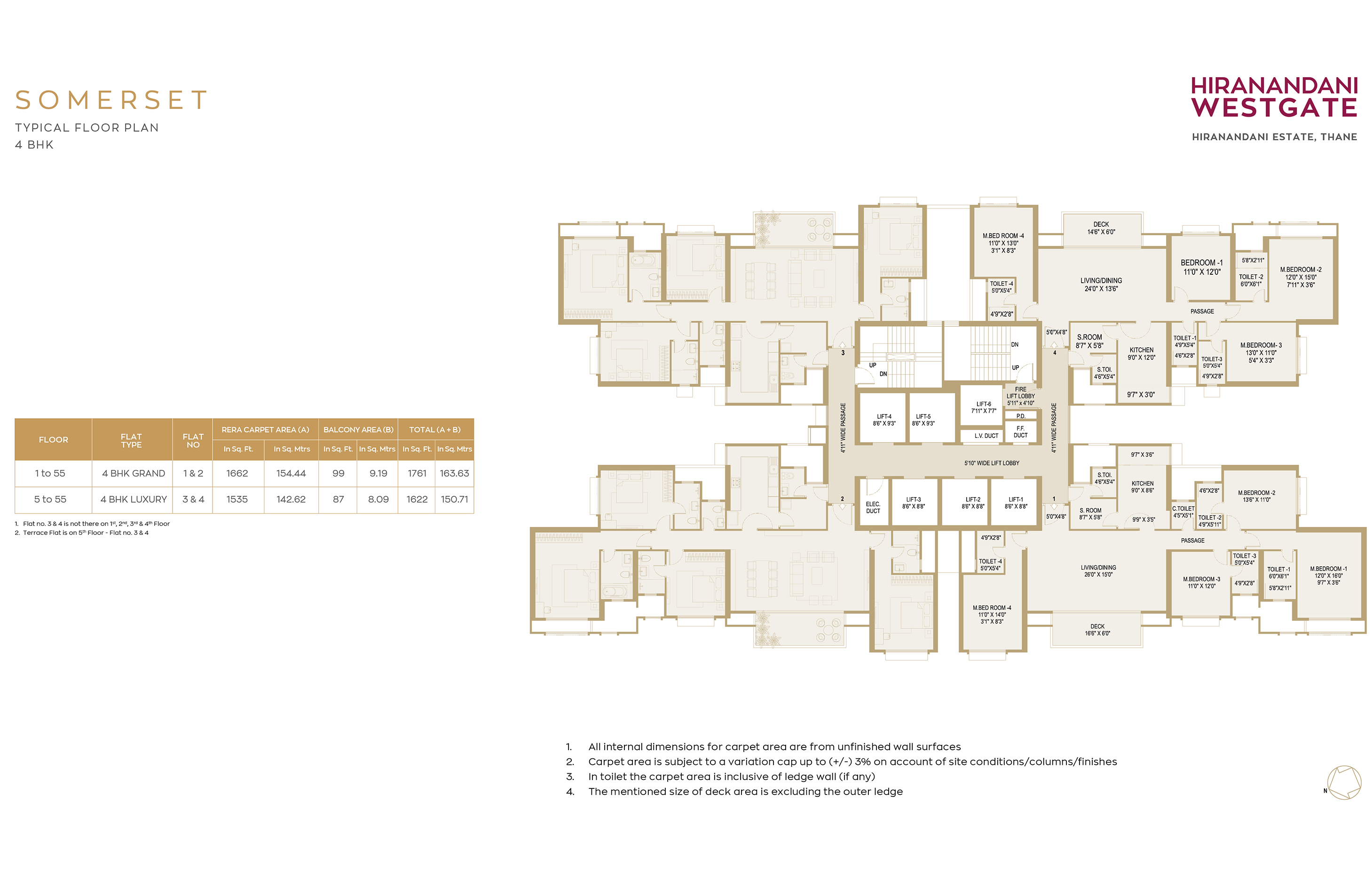 Somerset, a 55 storey tower at Hiranandani Westgate, exudes luxury in every corner. The iconic tower laced with neo-classical design offers coveted 4 bed air- conditioned residences with large balconies. The elevated ceilings in each apartment, the premium marble flooring, the false ceiling with recessed lights, the thoughtful design with ample usable space and the expansive windows overlooking captivating landscaped gardens, yeoor hills and Thane creek rightly blend craftsmanship and nature. Somerset is an ode to contemporary creations crafted with enthusiasm and passion.